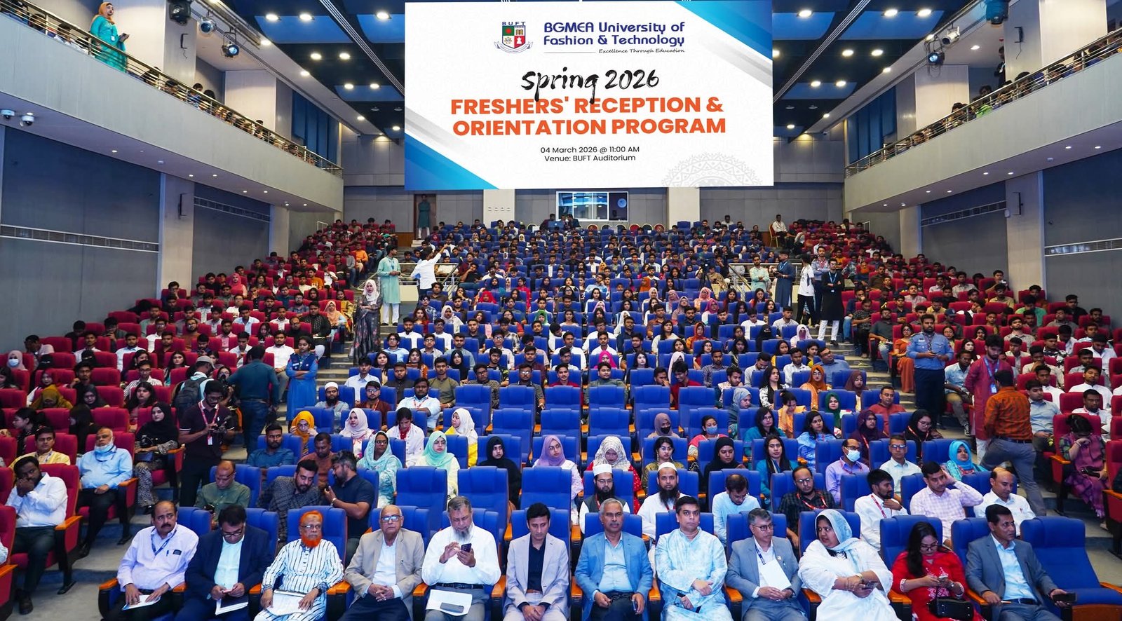 নতুন স্বপ্ন, সম্ভাবনা ও একাডেমিক যাত্রার প্রত্যাশা নিয়ে বিজিএমইএ ইউনিভার্সিটি অব ফ্যাশন অ্যান্ড টেকনোলজি এ স্প্রিং সেমিস্টার ২০২৬-এর নবীনবরণ ও ওরিয়েন্টেশন অনুষ্ঠান অনুষ্ঠিত হয়েছে।