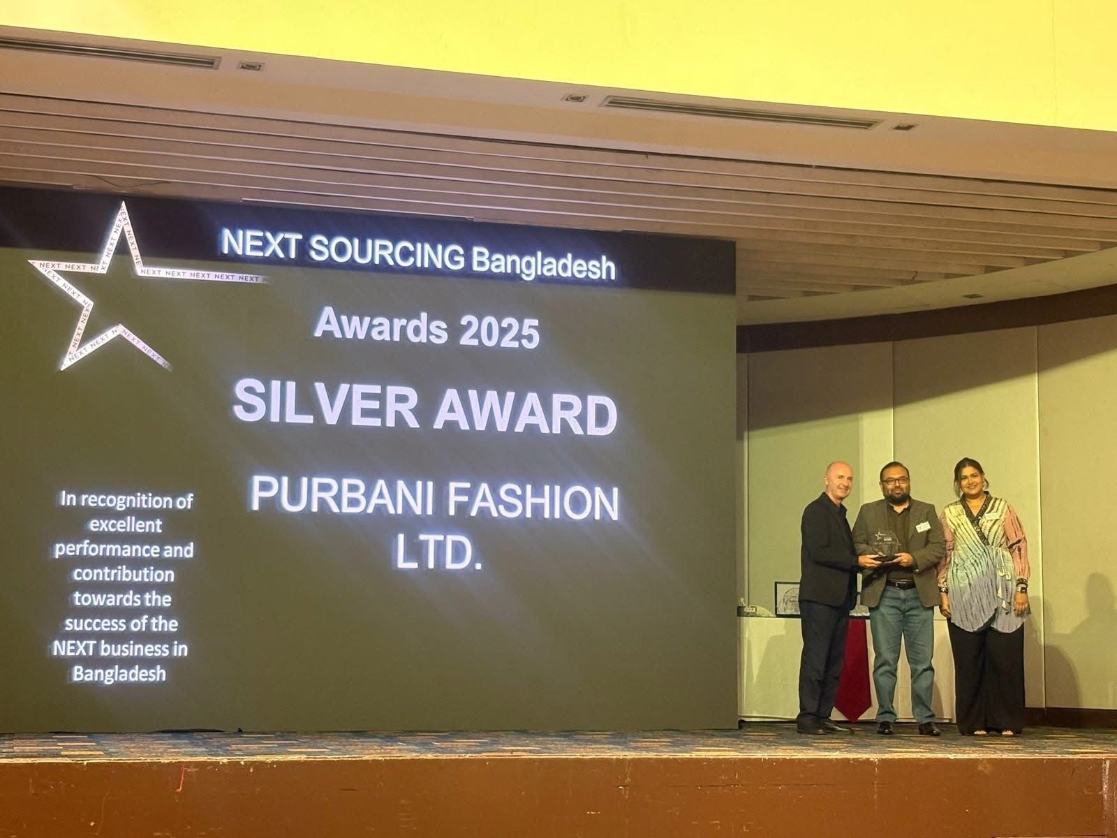 বাংলাদেশের তৈরি পোশাক খাতের অন্যতম প্রতিষ্ঠান পুরবাণী ফ্যাশন লিমিটেড আবারও আন্তর্জাতিক স্বীকৃতি অর্জন করেছে। নেক্সট সোর্সিংয়ের পক্ষ থেকে টানা দ্বিতীয়বারের মতো প্রতিষ্ঠানটিকে সম্মাননা দেওয়া হয়েছে, যা তাদের ধারাবাহিক সাফল্য ও অবদানের স্বীকৃতি হিসেবে বিবেচিত।